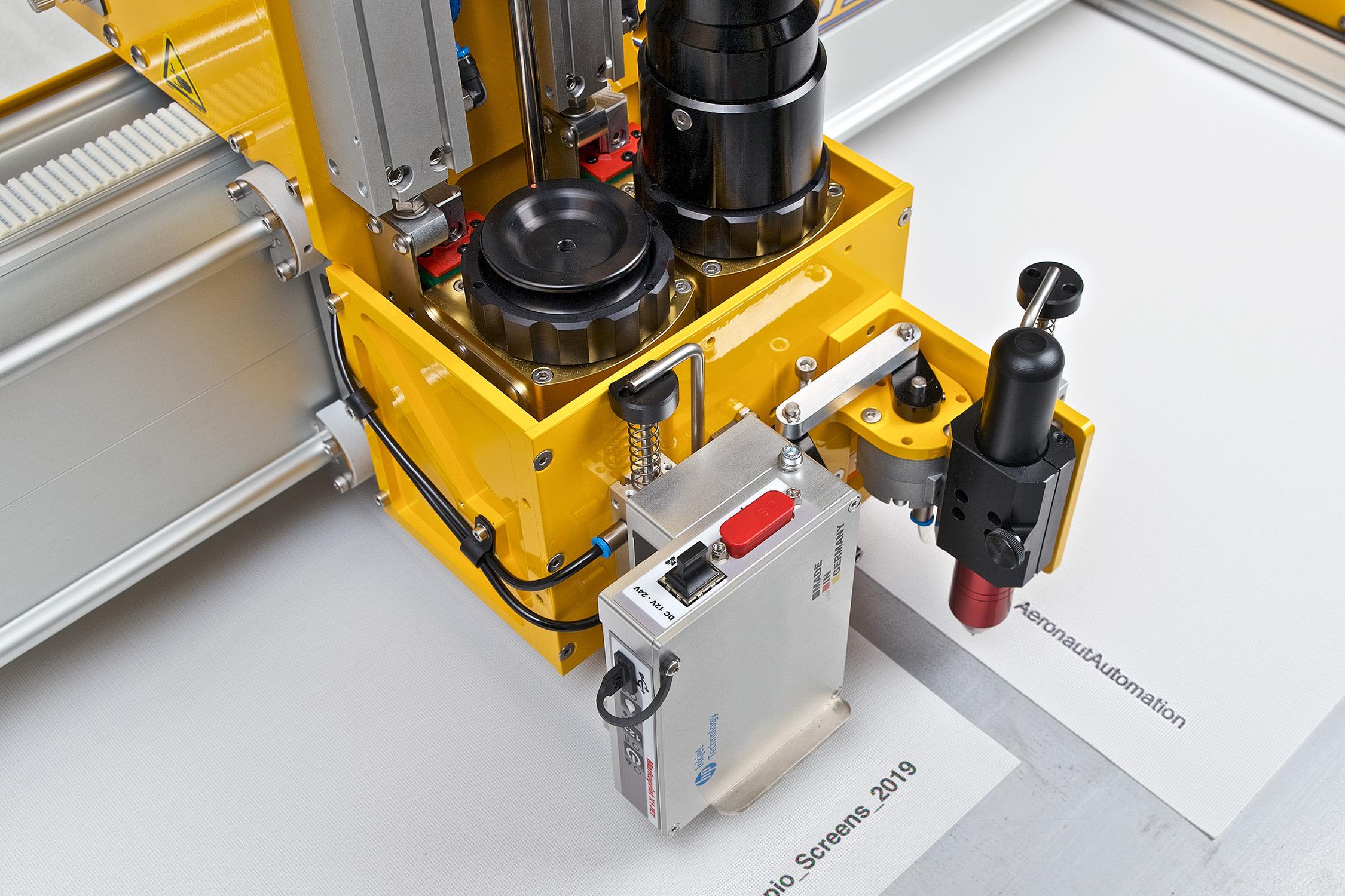 Other equipment such as drill punches, inkjet print heads, machine vision cameras and extra pens can easily be fitted to the cutting head.
