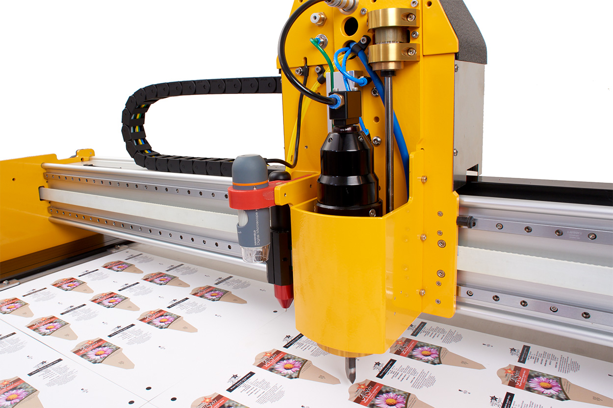For applications requiring extreme pressure, such as cutting and creasing tougher materials, the tool axis can be made higher pressure. As with most Aeronaut cutters, tool pressure is software controlled.