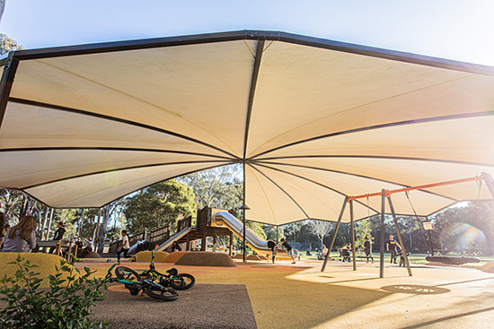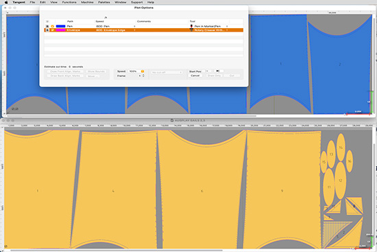 Big products and wide fabrics used in shade sails means you need an Aeronaut wide-span cutter to cut your jobs. Knitted shade cloth can be a nightmare to cut with scissors since it frays like mad but it can be cut quite easily with a rotary blade. The rotary blade rolls over the top of the shade cloth and cuts remarkably cleanly. Shade cloth is relatively stretchy so some fabricators join their cloths together and cut the finished shape while others will cut the panels to size and join them as accurately as necessary.