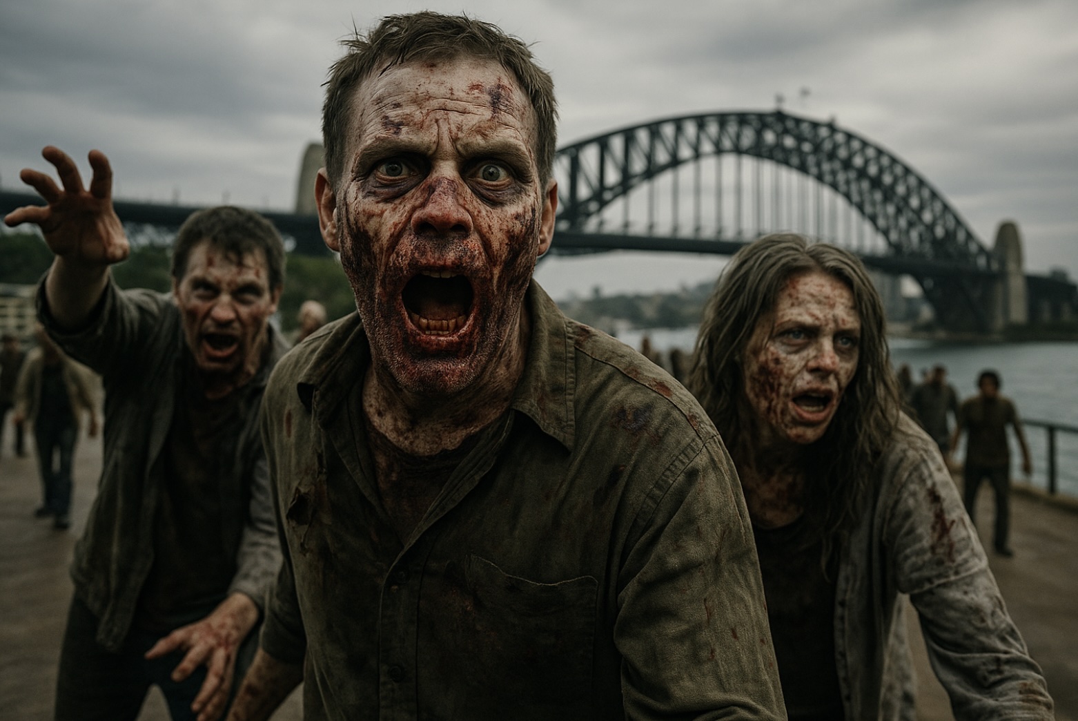Tamworth's famous Country and Music Festival was disrupted by reports of a zombie attack. Country music fans in the area attempted to leave on foot but were overrun by the zombie crowd. When police arrived, it was impossible to tell the difference between zombies and C&W music lovers.